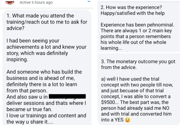 Below are a few real messages from people who attended one training, asked targeted questions, or went through a business audit. These are not polished case studies. These are real conversations, shared with permission, from people who applied what they learned inside their own businesses.